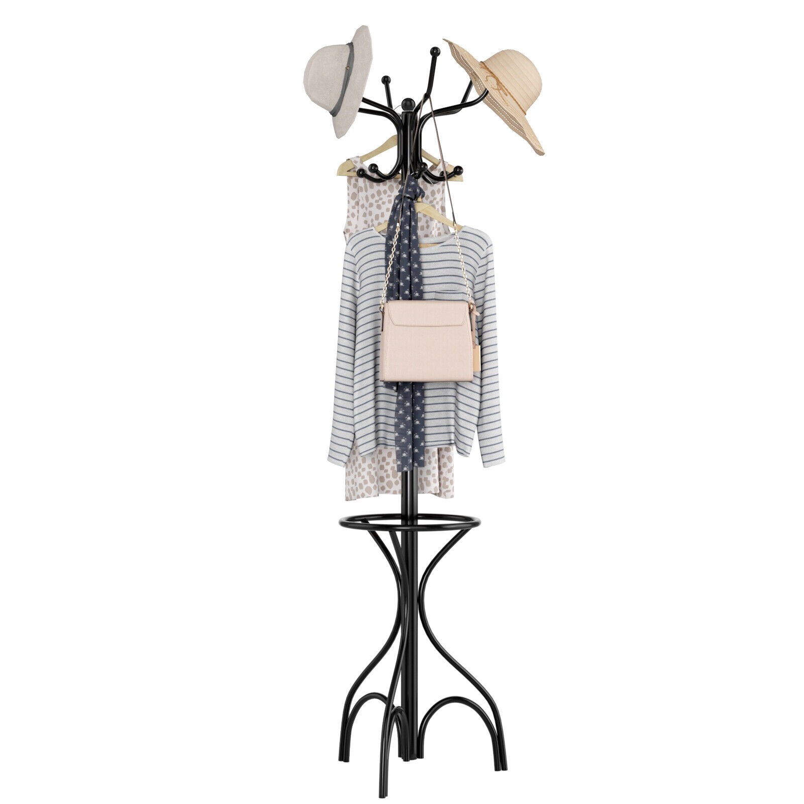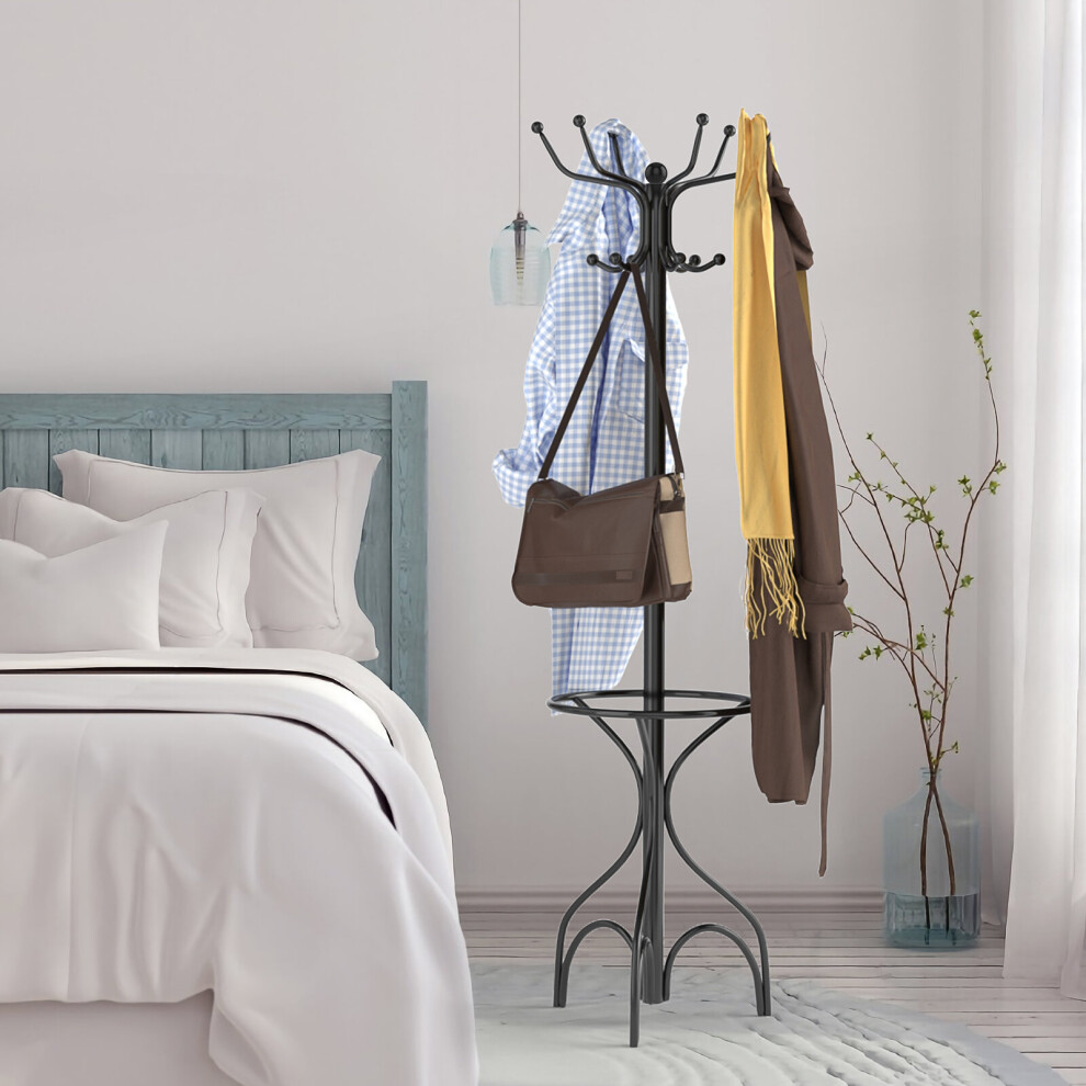 Modern Coat Stand Hanger 12 Hooks Metal Clothes Rack with Umbrella Holder