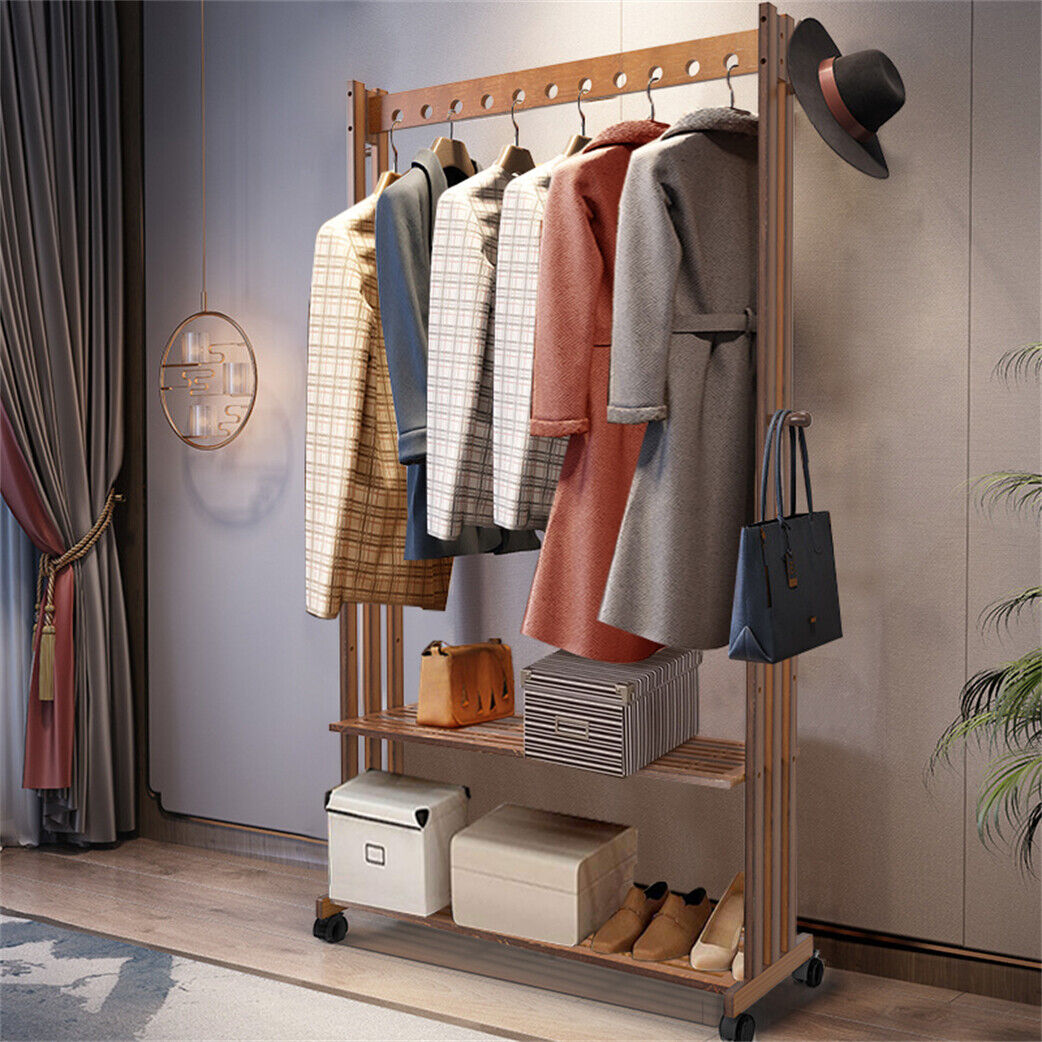 Garment Rack Mobile Coat Hanger Stand Clothes Display Organizer Adjustable Shelf