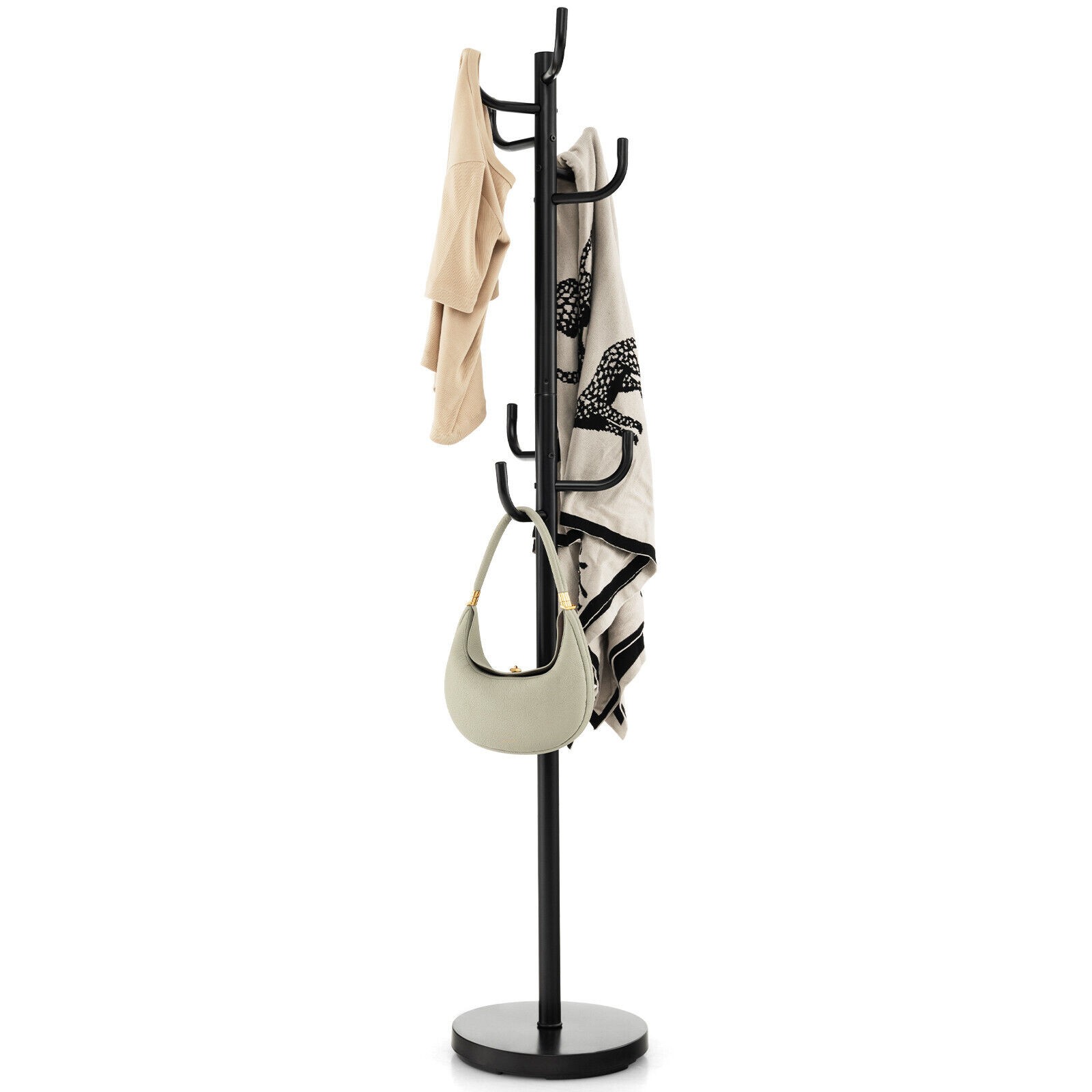 12 Hooks Coat Hanger Metal Rack Stand Hat Jacket Bag Umbrella Hanging Organiser
