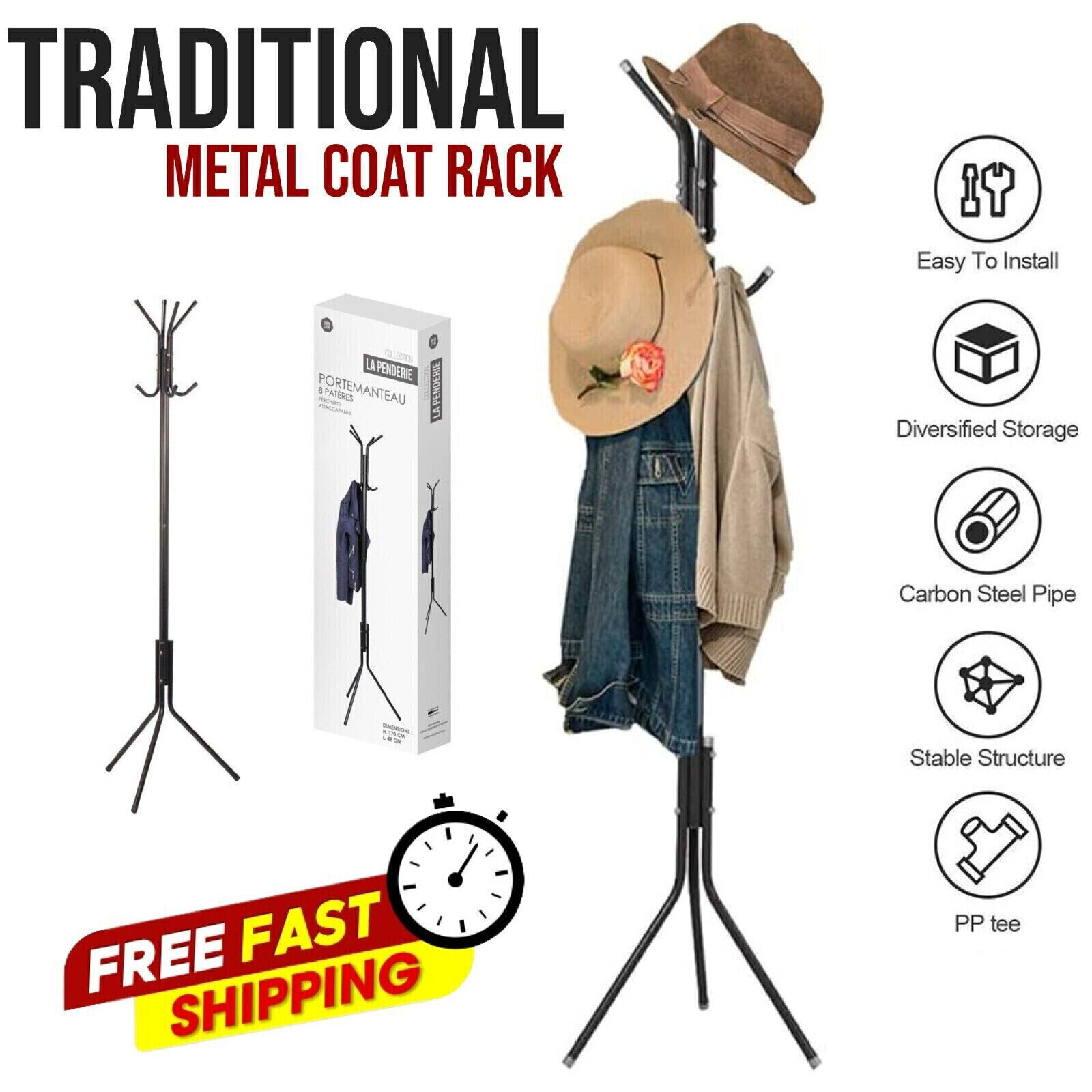 COAT HANGER STAND TRADITIONAL GARMENT METAL RACK JACKET HOLDER WITH MULTI HOOKS