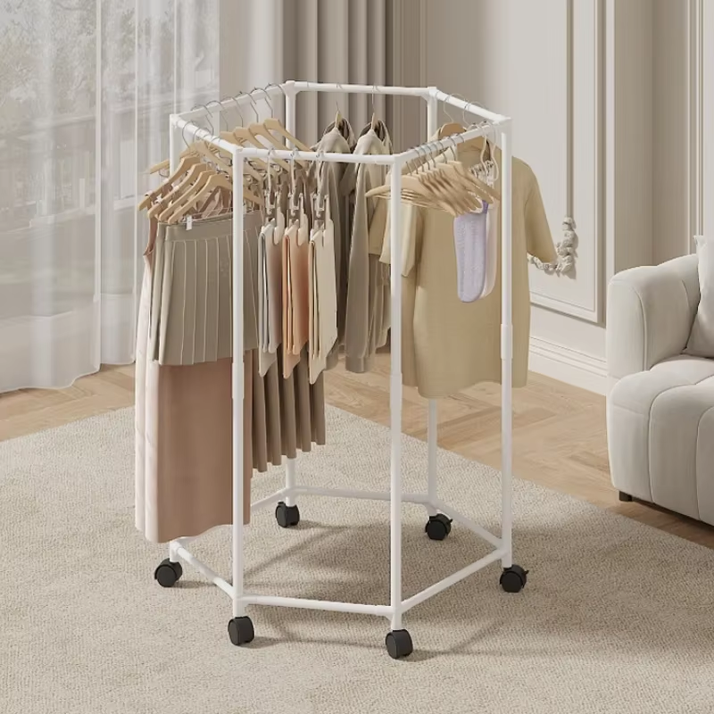 Hexagon Rotating Floor Clothes Rack Dormitory Coat Hanger Stand Indoor Drying Ra