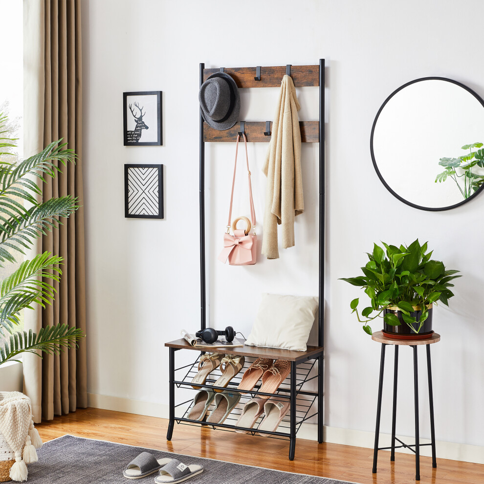 4 Tier Coat Hanger Hooks Stand & Metal Shoe Bench Storage Display Rack Unit