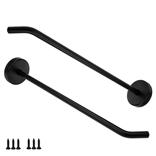 VILLFUL 16pcs Black Stainless Steel Ceiling Rod Holders Round Flange Brackets for Curtain Poles Coat Hanger Wall Mount Drying Rack Support with Rounded Design and Easy Installation