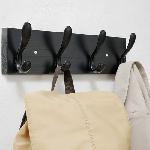 HONSKY Coat Rack Wall Mounted,Wooden Coat Rack with 4 Double Hooks,Wall Coat Rack,Coat Hanger Wall Mounted,Wooden Coat Rack,Black/Black