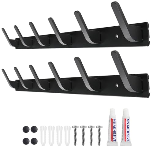 Sevenpers Coat Hooks Wall Mounted, Black Wall Coat Rack (2 Pack), Heavy Duty Coat Hooks, Wall Hanger with 6 Hooks, Clothes Hooks and Wall Hooks for Hanging Coats, Towels, Bags