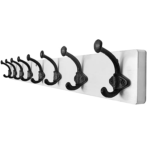 WEBI Rustic Coat Hooks Wall Mounted,8 Cast Iron Hooks,90cm Long Coat Rack Wall Mount,Vintage Coat Hanger Wall for Hanging Coats,Jacket,Clothes,White
