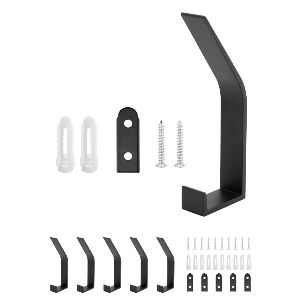 5 Pack Black Coat Hooks, Double Prong Coat Hangers Wall Mounted, Heavy Duty Coa
