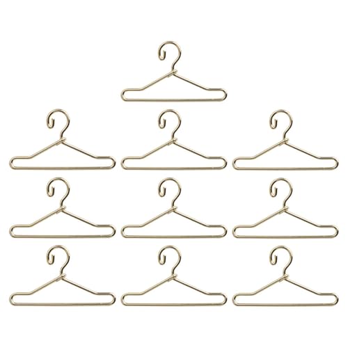 NOLITOY Miniature Doll Clothes Rack with 10 Gold Mini Hangers and Silver Iron Coat Stand 15x12cm Doll Apparel Hanger Set for Dollhouse Wardrobe Accessories and Clothing Display