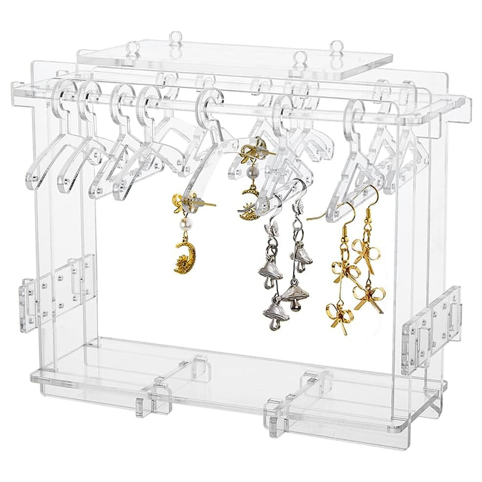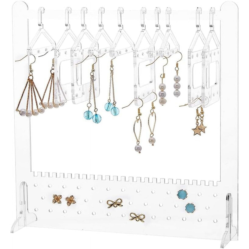 Jewelry Display Stand Holder Acrylic Hanger Rack Ear Studs Show Case Earring Organizer with 8Pcs Coat Hangers for Women Girls