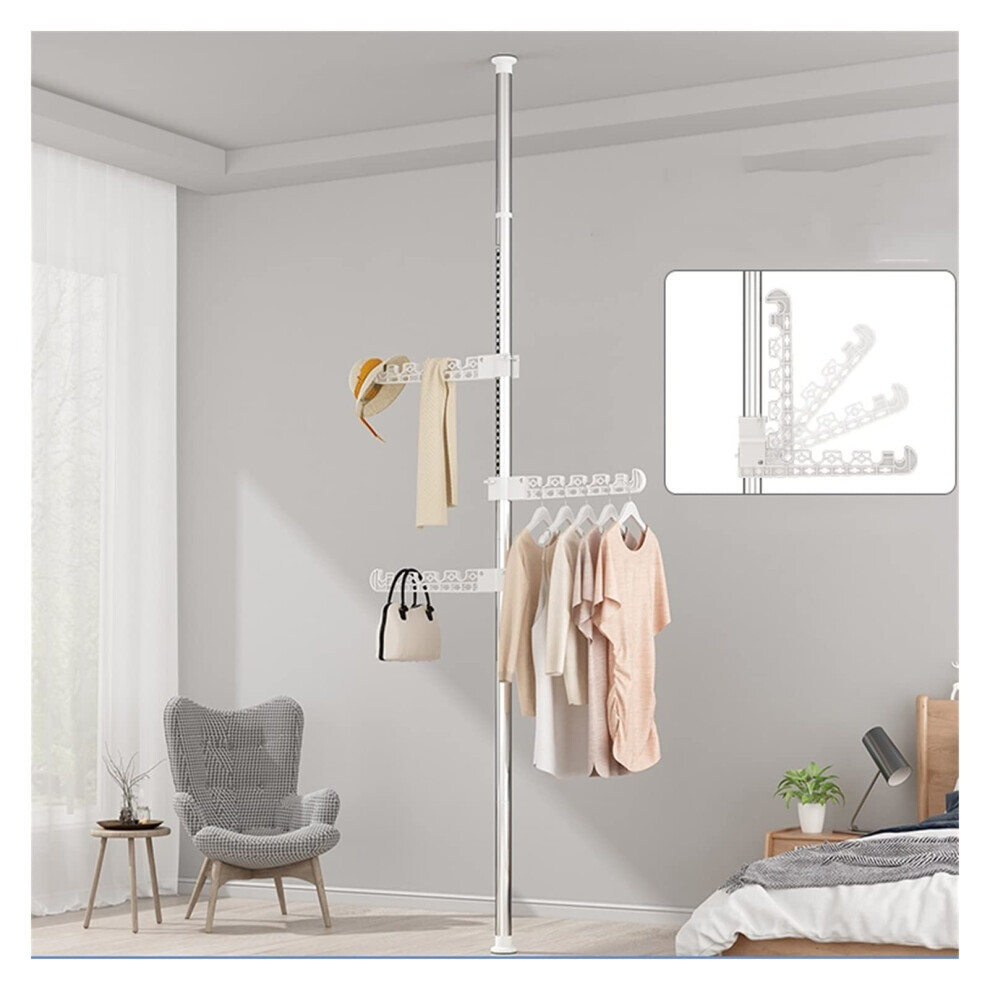 Coat Rack Stand 360Degree Rotation Folding Stainless Steel Drying Rack Telescopic Rod Adjustable Distance Wings Hangers