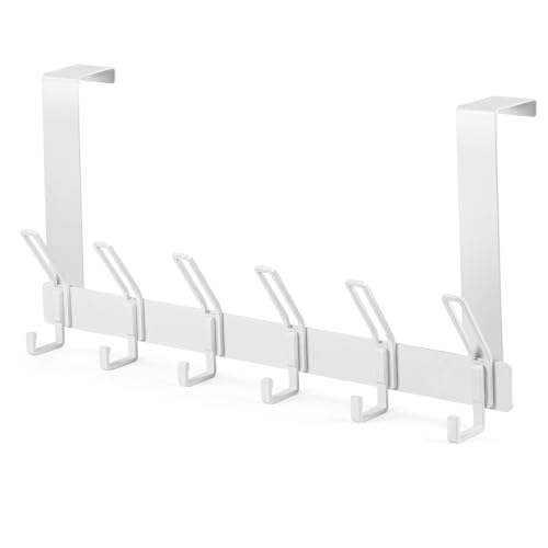 HuaJiao Over Door Hooks, 6 Hooks Over Doors Hanger 1 Pack Heavy Duty Coat Hooks with Rust Resistant Door Hook Coat Rack for Towels Jackets Purses Bags Clothes Robes (White)