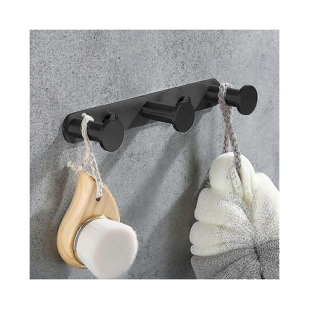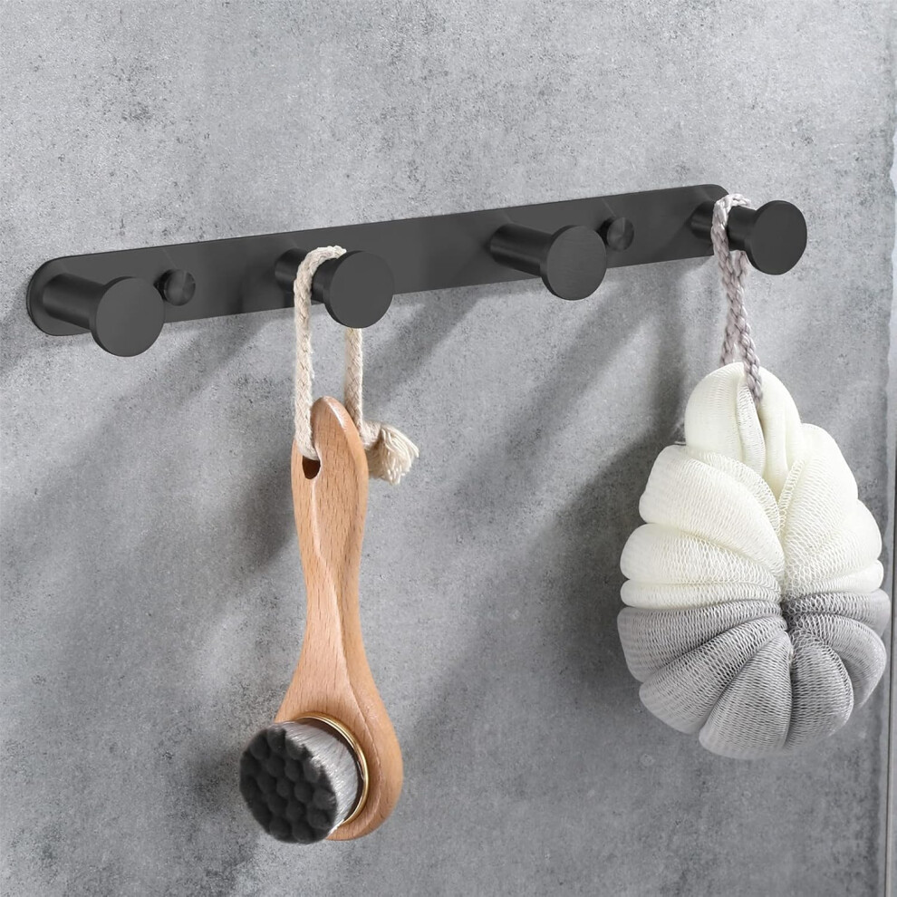 Wall Mounted Towel Hook Coat Hooks with Hooks 304 Stainless Steel Wall Mount Towel Holder Hooks for Bathroom Kitchen Doors (4 Hooks, Black)