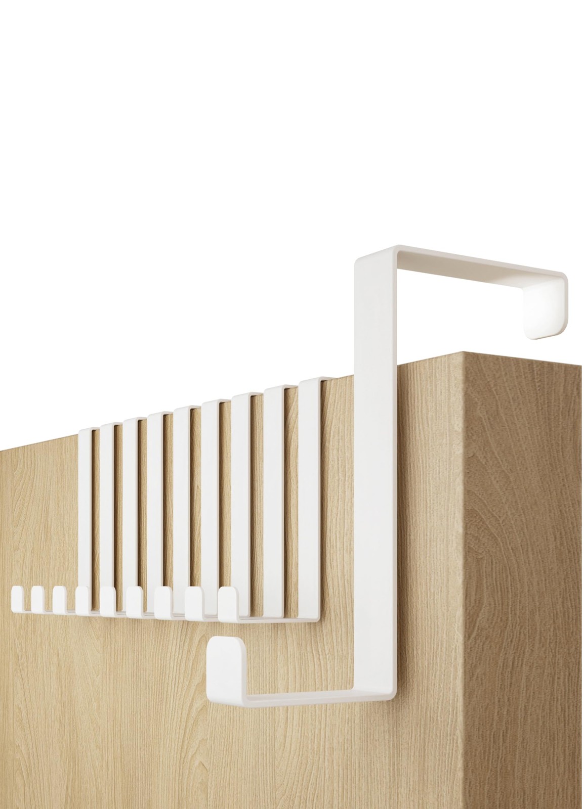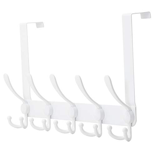 Dseap Over The Door Hook Hanger - Fits 35mm to 45mm Doors | 5 Tri Hooks Heavy Duty Towel/Coat Rack | Door Organizer for Clothes, Jackets, Hats, Towels, White