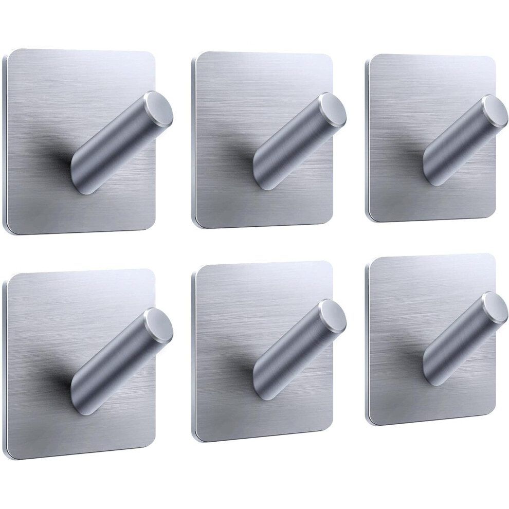Waterproof Stainless Steel Adhesive Hooks Strong Load Bearing Self Sticking Towel Coat Hooks For Doors Walls Easy Installation No Damage To Surfaces