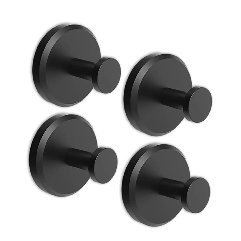 4smile Coat Hooks 4pc Black Stainless Steel - Self Adhesive Hooks Sticky Hooks Wall Hooks Bathroom Hooks- Versatile for Heavy Duty Coat Hanging on Walls & Doors with Dual Adhesive or Nail Option