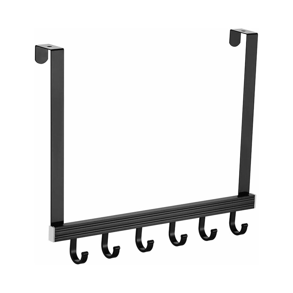 Over The Door Hanger Hooks - Over-Door Coat Rack with 6 Knobs for Doors with Flat Top up to 4cm Thick - Stainless Steel - Black