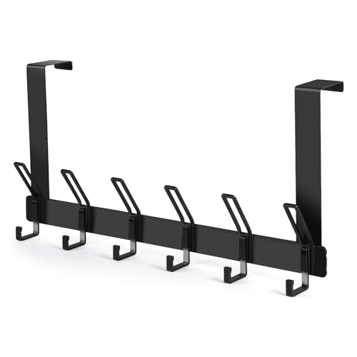 HuaJiao Over Door Hooks, 6 Hooks Over Doors Hanger 1 Pack Heavy Duty Coat Hooks with Rust Resistant Door Hook Coat Rack for Towels Jackets Purses Bags Clothes Robes (Black)
