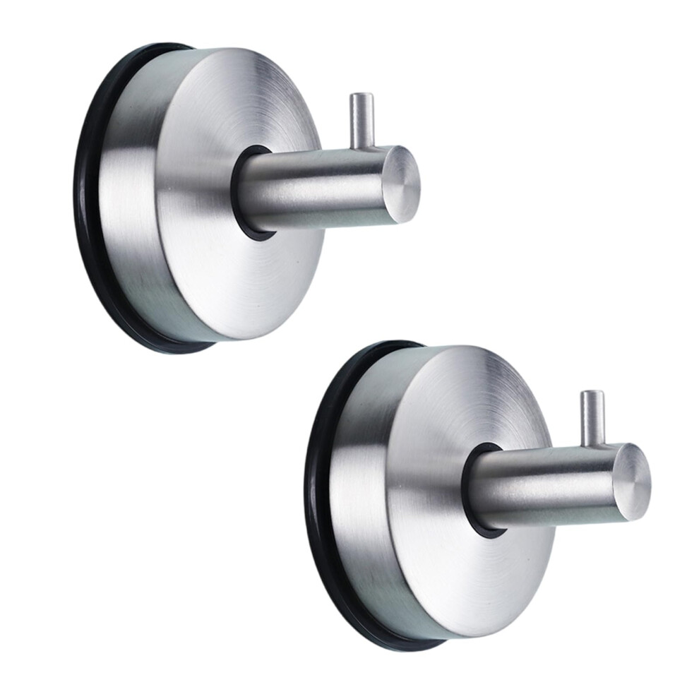 Suction Cup Hooks Stainless Steel 2 Pack Coat And Hat Hangers For Glass Doors Shower Bathroom Kitchen Silver