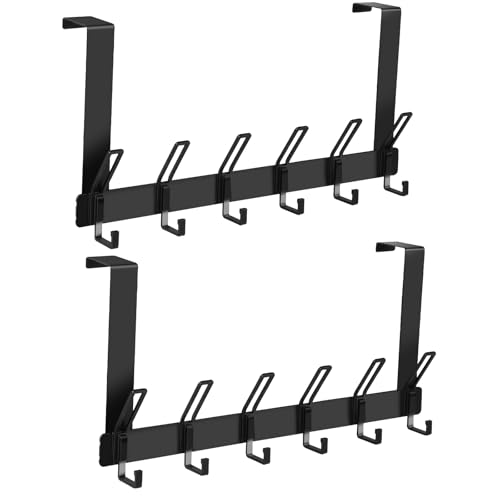 HuaJiao Over Door Hooks, 6 Hooks Over Doors Hanger 2 Pack Heavy Duty Coat Hooks with Rust Resistant Door Hook Coat Rack for Towels Jackets Purses Bags Clothes Robes (Black)