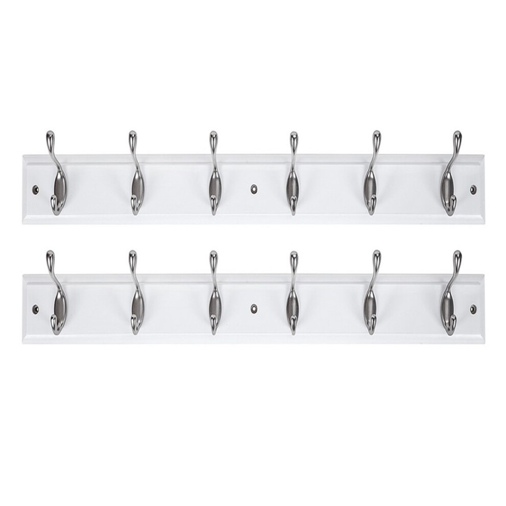 DOKEHOM [2 Pack 6-Satin Nickel Hooks on White Wooden Board Wall Mounted Coat Hook Rack Hanger