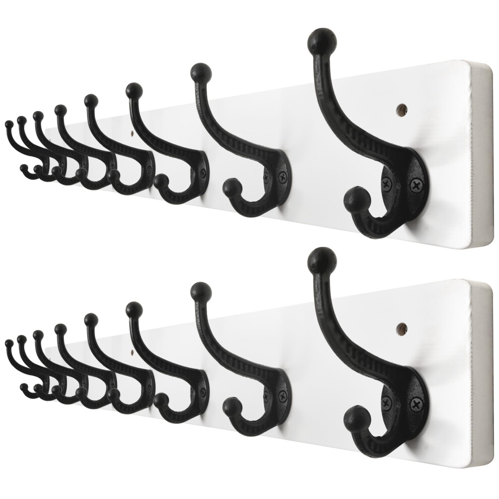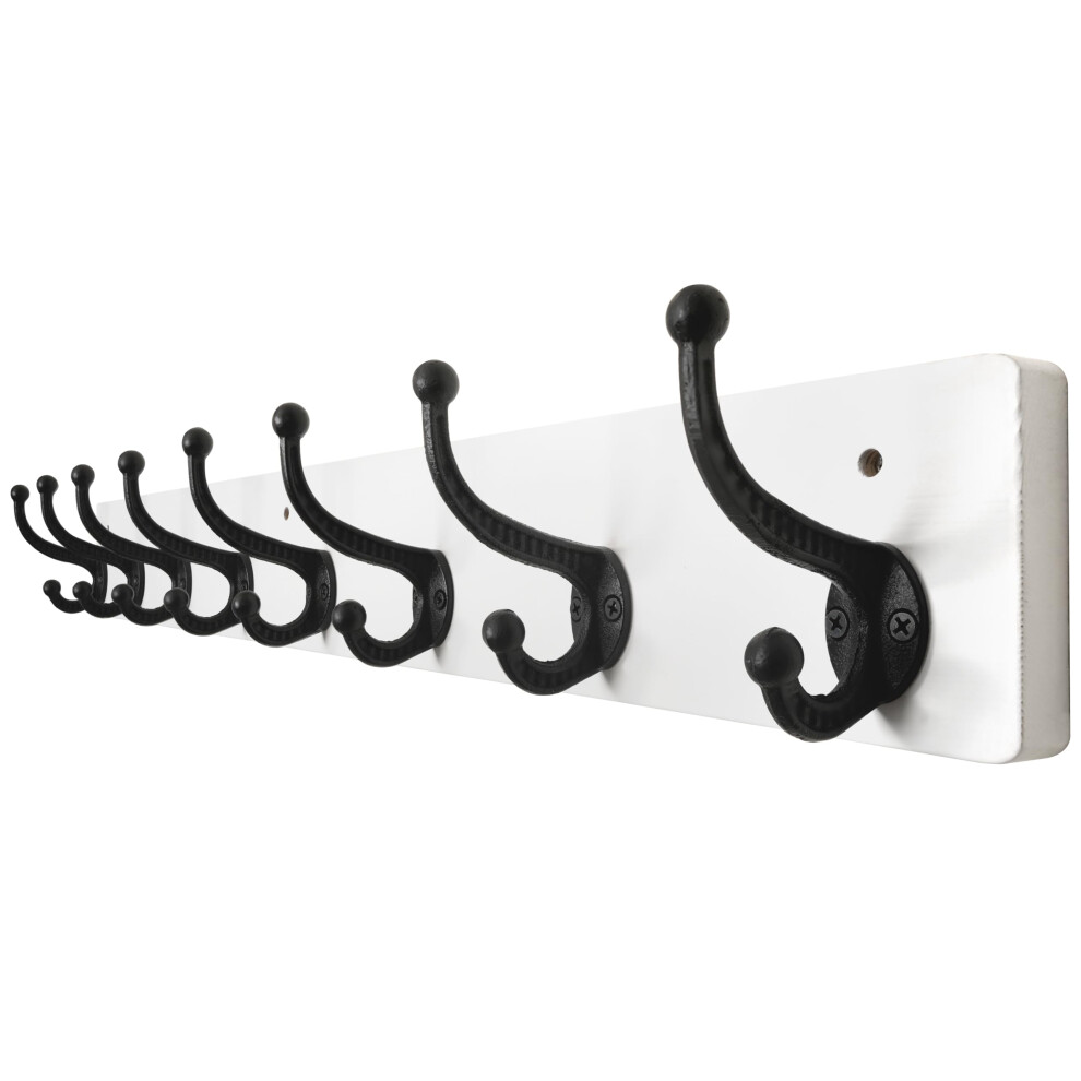 WEBI Rustic Coat Rack Wall Mount Long 8 Cast Iron Coat Hooks Wall Mounted,Heavy Duty Wall Coat Hanger Hooks for Hanging Coats,Clothes,Black on White,2