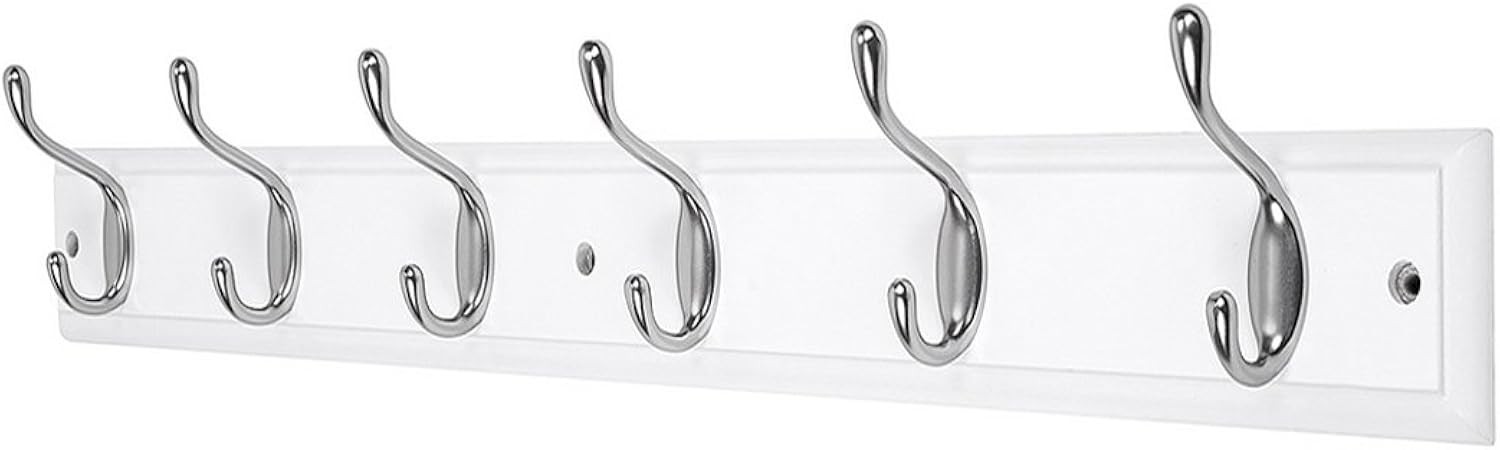 DOKEHOM 6-Satin Nickel Hooks on White Wooden Board Wall Mounted Coat Hook Rack Hanger