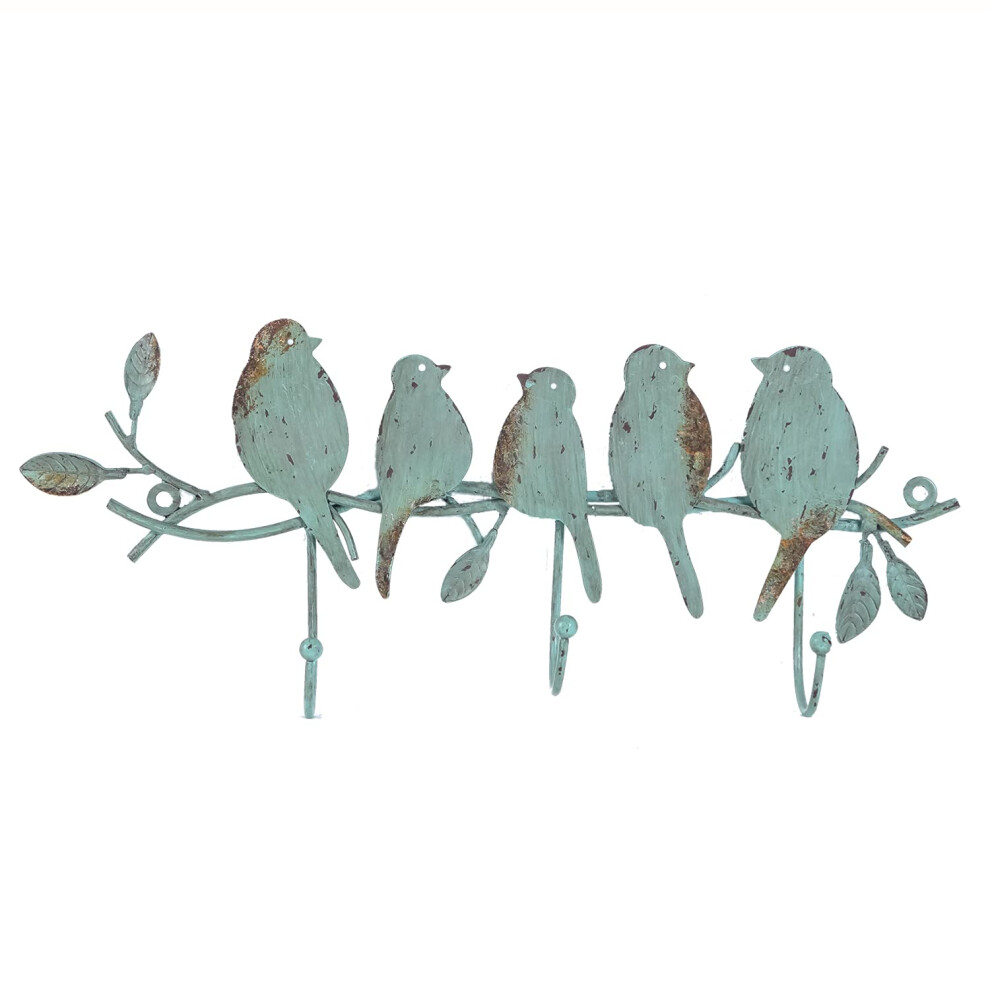 SOFFEE DESIGN Vintage Metal Wall Mounted Coat Rack with 3 Hooks, Birds on Tree Branch Hanger Key Holder Wall Organizer for Hats, Towels, Clothes, Sca