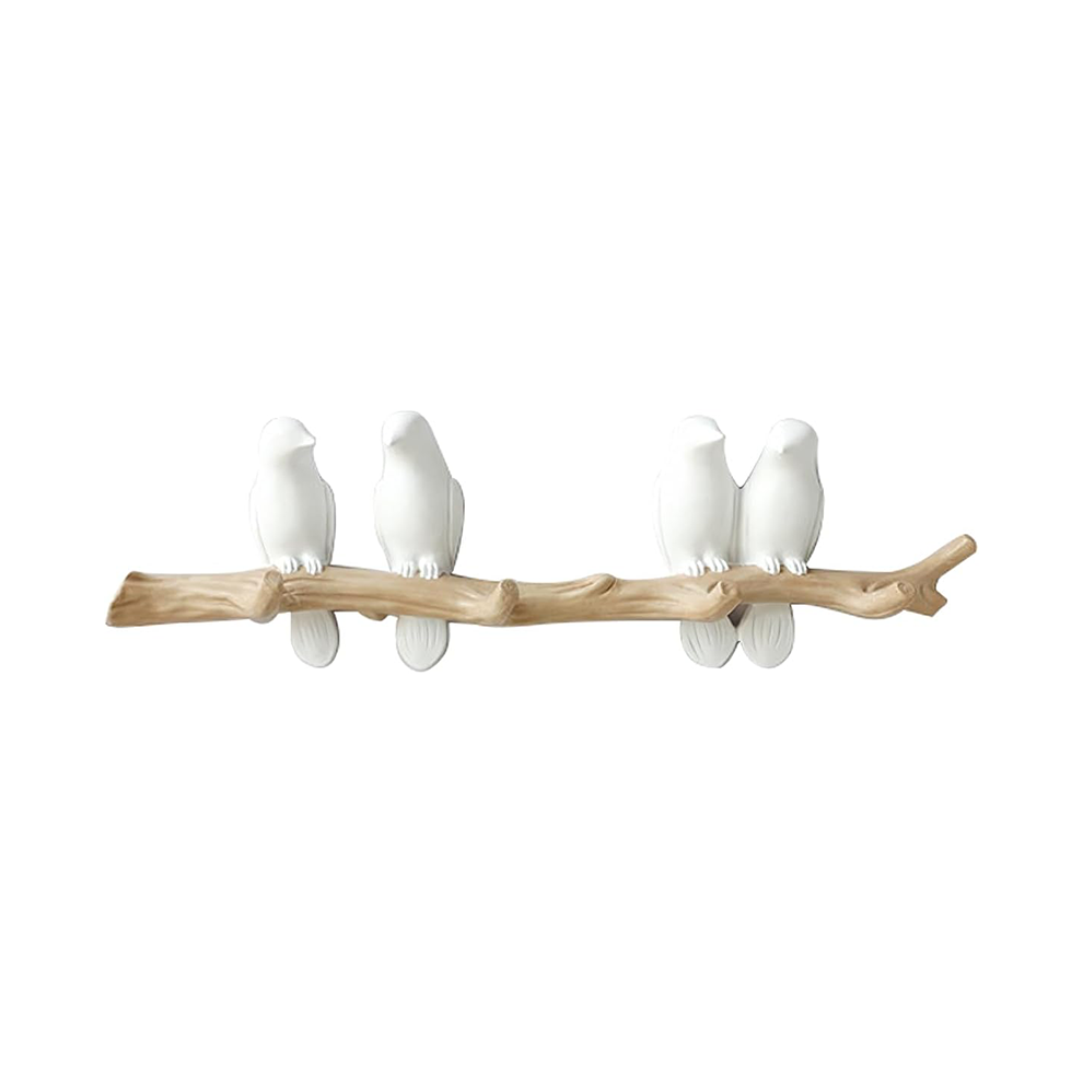 Nature Inspired Wall Mounted Coat Hook Rack, Sturdy and Versatile Resin Hanger with Birds on Branch, Eco-friendly Handmade Organizer for Keys Hats