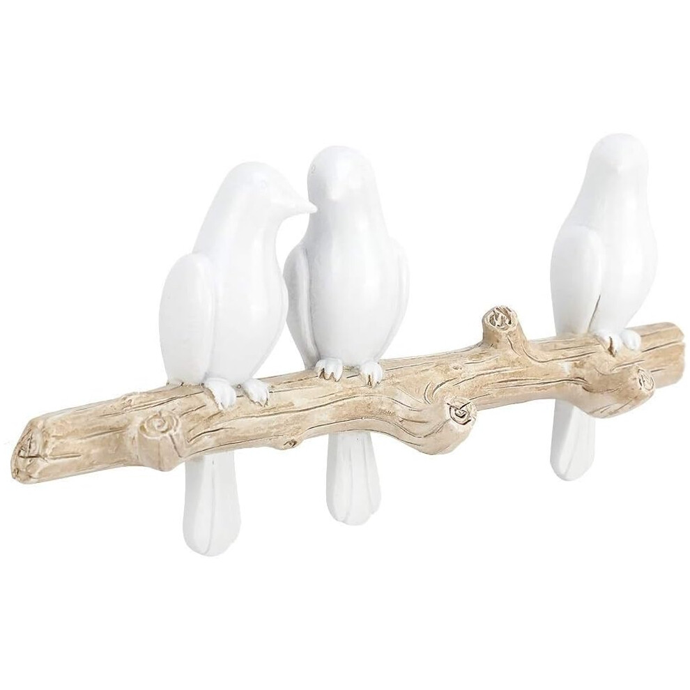 Wall Mounted Hook Rack with Birds On Tree Branch, Creative Design Resin Wall Hanger for Coats Hats Towels Keys, Decorative Art Nature Inspired Coat