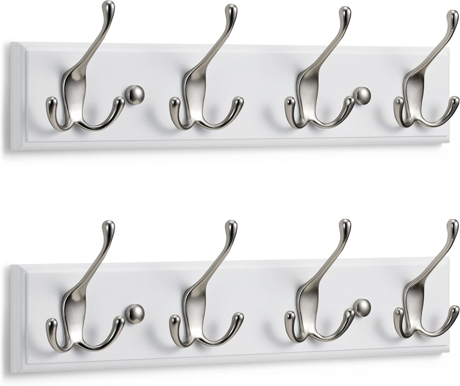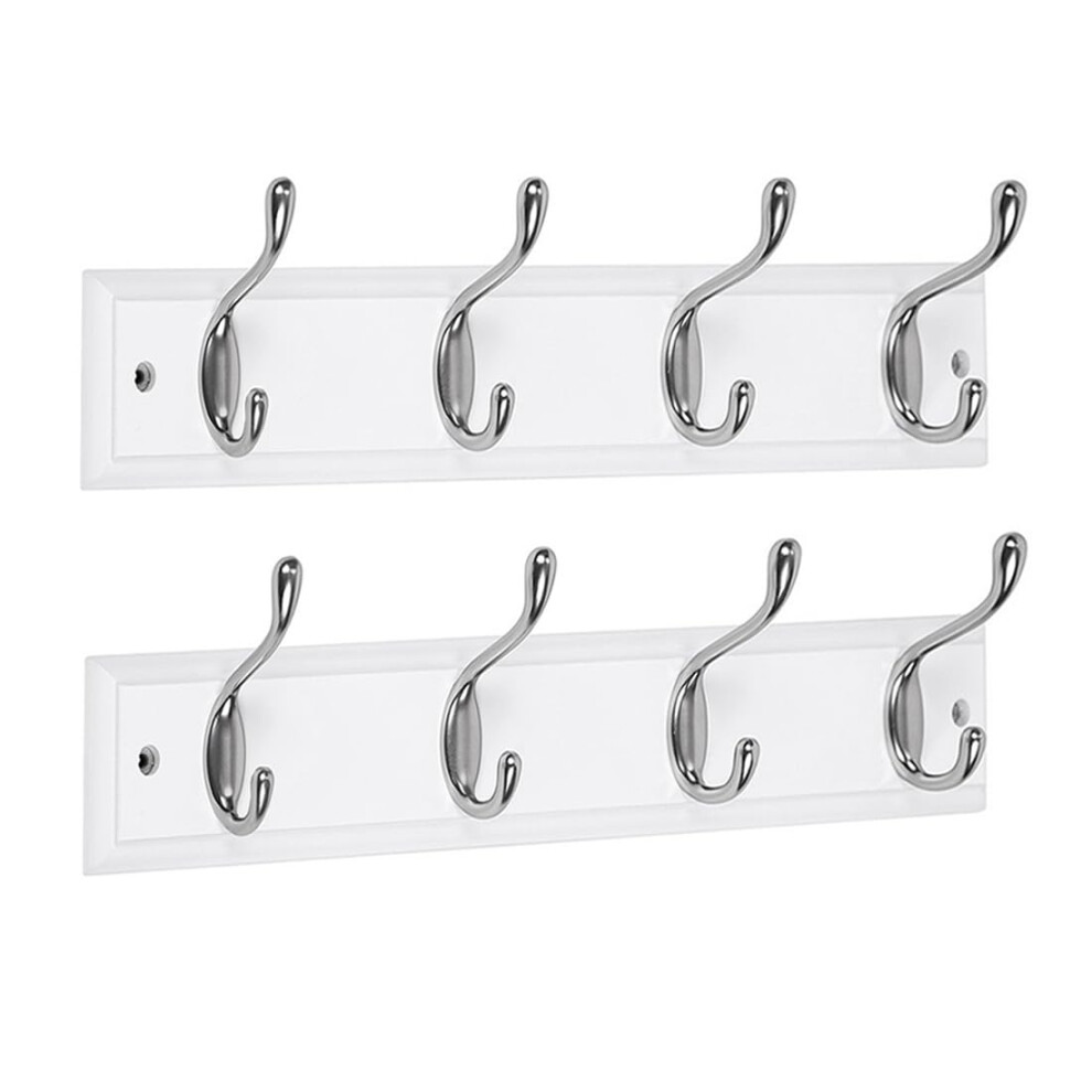 DOKEHOM [2 Pack 4-Satin Nickel Hooks on White Wooden Board Wall Mounted Coat Hook Rack Hanger