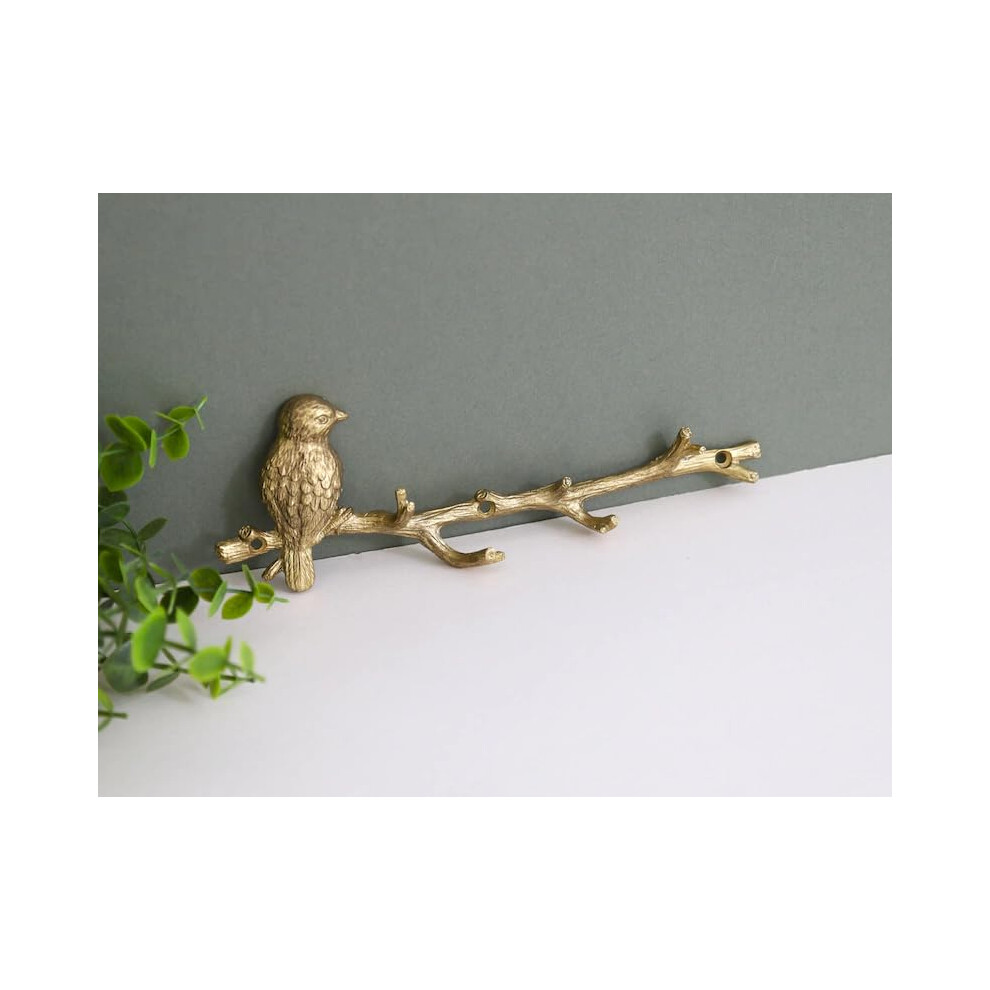 Fyne-Finds Metal Gold Bird on Branch 6 Hooks Coat Key Lead Hanger Rack Wall Mounted