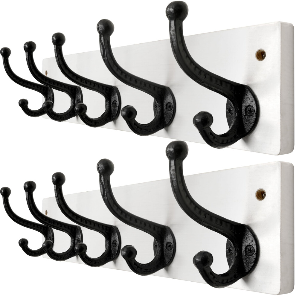 WEBI Rustic Coat Rack Wall Mount,5 Cast Iron Coat Hooks Wall Mounted,Heavy Duty Wall Coat Hanger Hooks for Hanging Coats,Clothes,Black on White,2