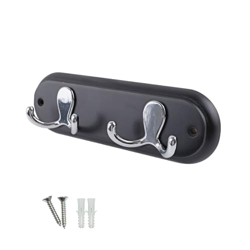 keypak Compact Door Wall Mounted Robe Coat Rack with 2 Double Hooks, Fixings Included, 22.5cm, Polished Chrome on Black