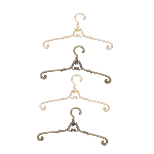 Hohopeti 4PCS Mini Doll Clothes Racks Coat Hangers for Miniature Dolls Vintage Style Gold and Antique Bronze Miniature Hanger Decoration for Skirts Coats and DIY Crafts