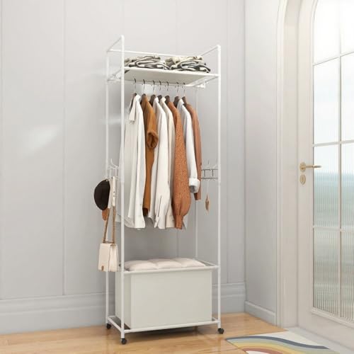 Freestanding Clothes Rail ,Hanger Stable and Narrow Coat Racks ,compact footprint,with Storage,Metal,With casters,for Entryway Bedroom Cloakroom A