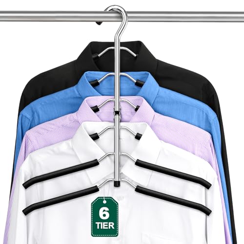 Coat Hangers, ZriEy 6 Tier Folding Non Slip Foam Padded Space Saving Clothes Hangers, Black Metal Coat Racks Adult, Sweater T Shirt Jacket Hanger for Men Women Clothing & Wardrobe Storage