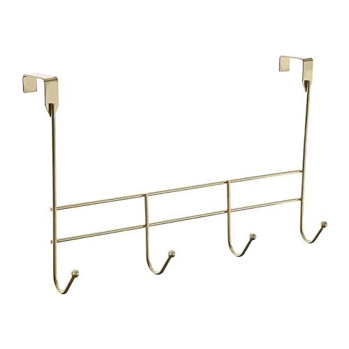 Premier Housewares Functional 4 Hook Champagne Gold Over Door Hanger | Stylish Over Door Coat Hanger for Washroom | Sturdy Design Hanging Rack for Livingroom | U-Shaped Racks