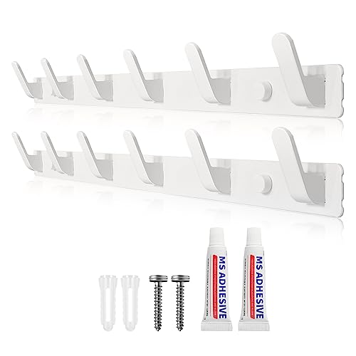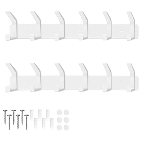 AUXHCYL Coat Hooks Wall Mounted, 2 Packs Coat Hangers Wall Mounted with 6 Hooks, Rust-Proof Racks for Jackets, Bags, Hats and Scarves, Wall Hanger for Bedroom, Bathroom, Kitchen (White)