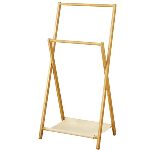 JS Ellie Foldable floor-standing wardrobe, bamboo material, portable coat racks at the head of the bedroom bed, balcony drying rack with shelves, stable load-bearing Wood Small