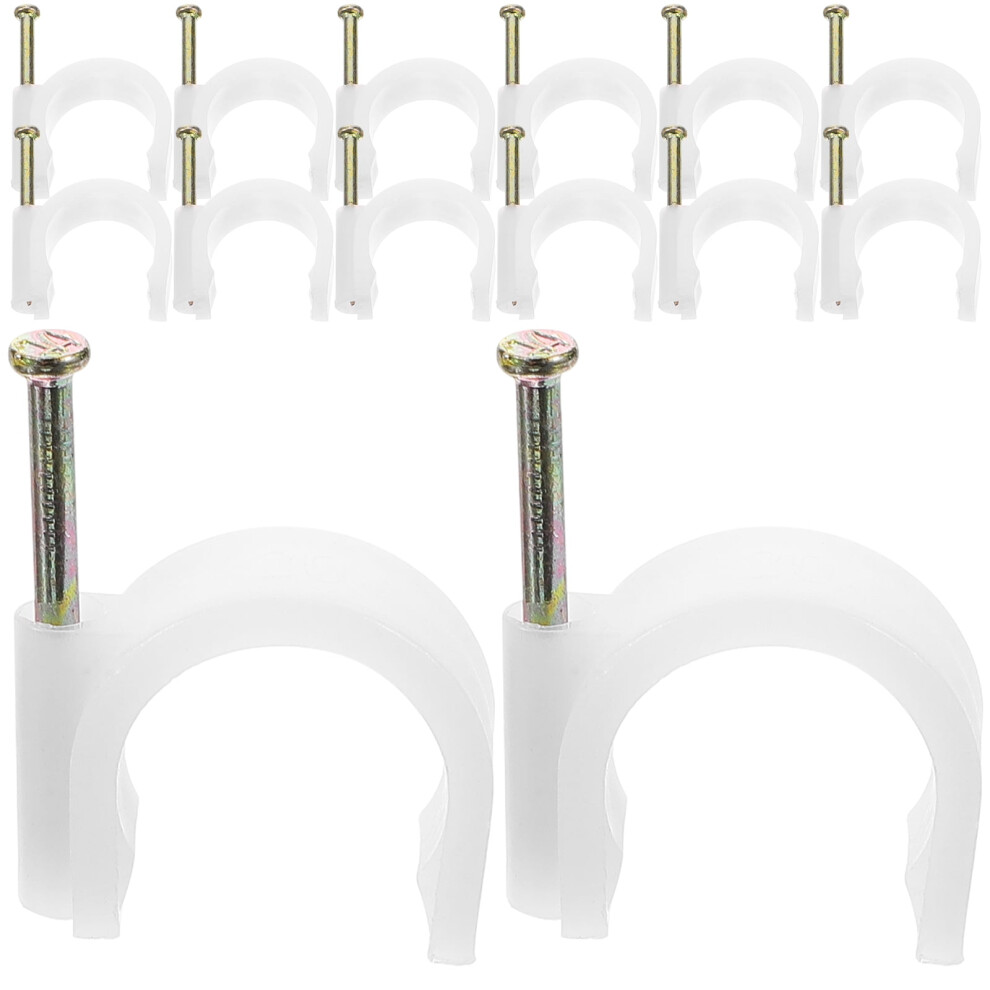 50 Pcs Steel Nail Tube Wire Holder Coaxial Cable Clips for TV Border Checkpoint U-tube White Pe