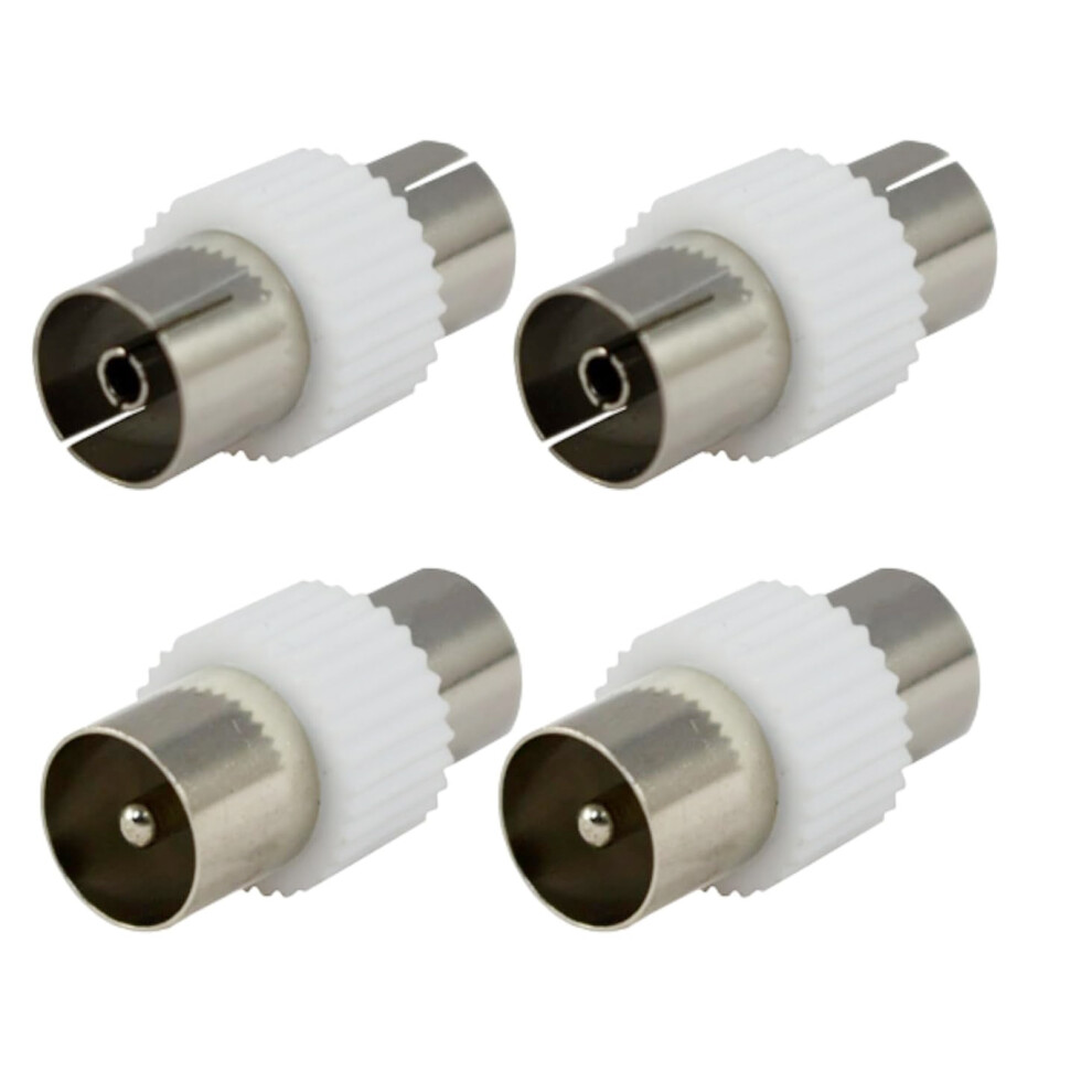 4 X Aerial Connectors, High-Quality Coaxial Cable Connectors for TV Aerials, Durable Zinc Alloy with Solder-Free Design
