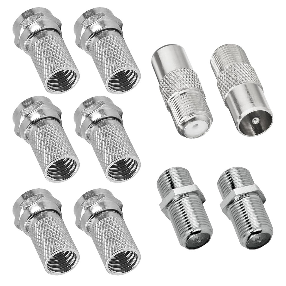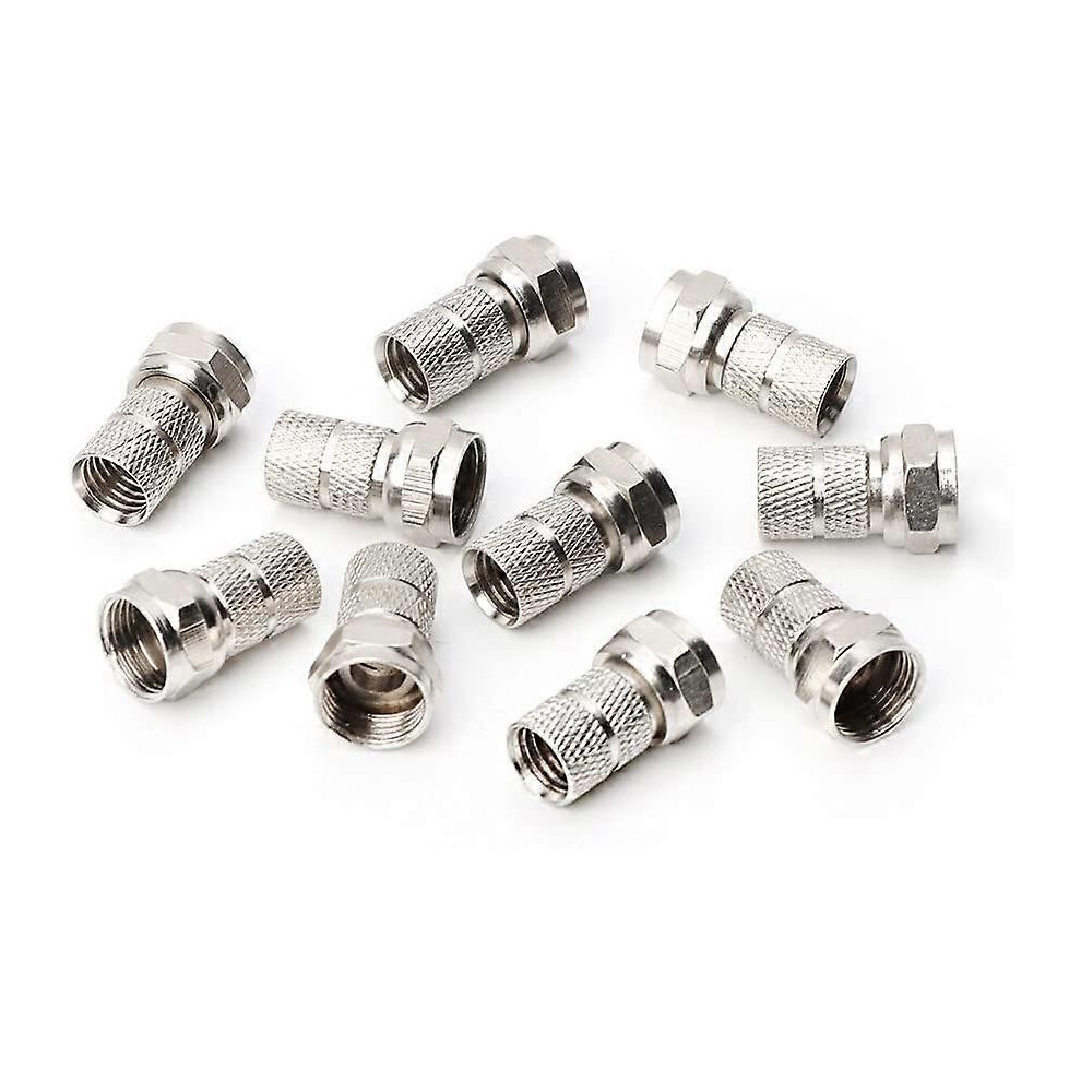 (As show, One size) 10pcs F Satellite Plug for Coaxial Cable RG6 Satellite TV Antenna Connector - Silver