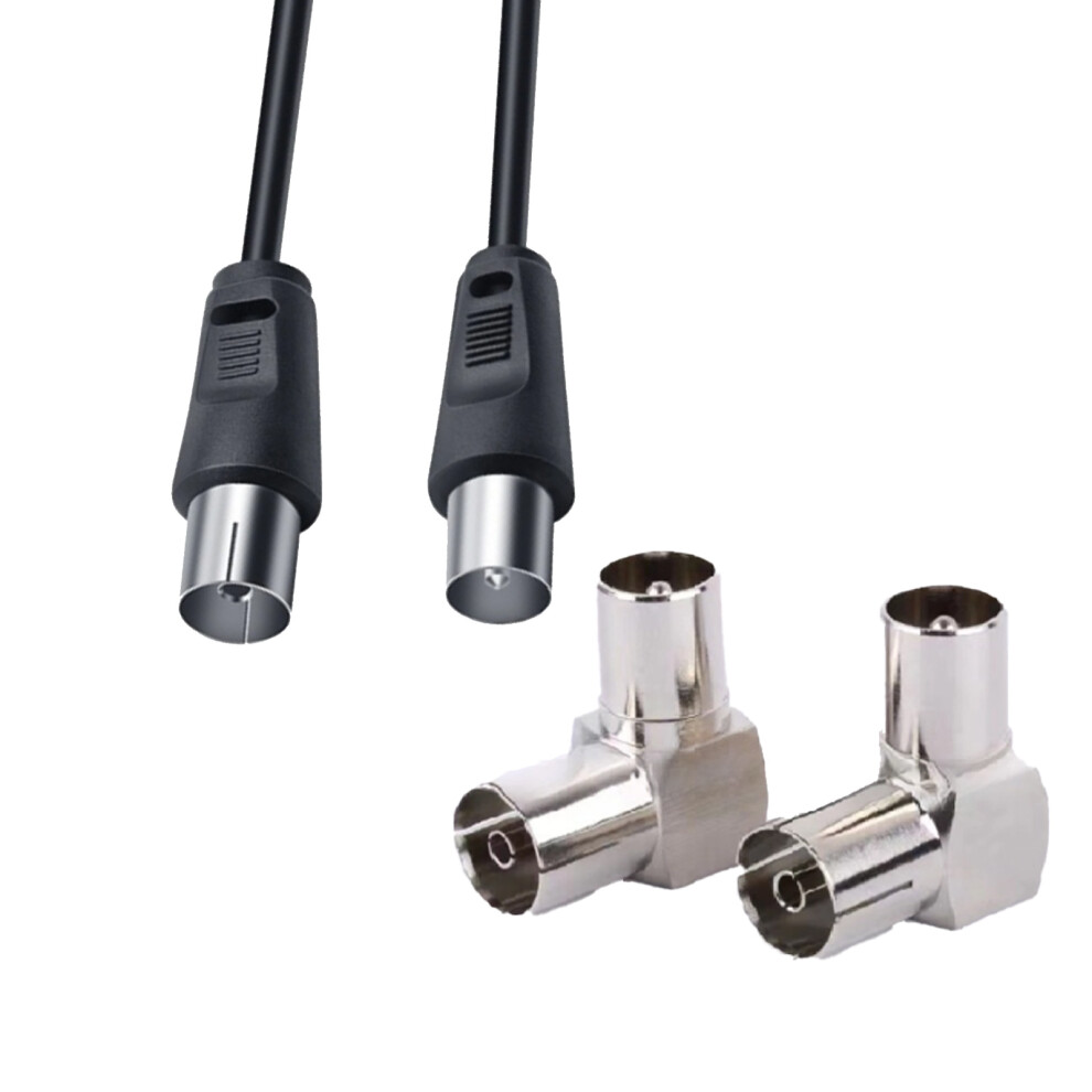 2M TV Aerial Coaxial Cable, 2pcs TV Male Aerial Coaxial Adaptor to PAL Female Adapter Right Angle, Adapter with Dual for Strong Signal for TV, VCR, DV