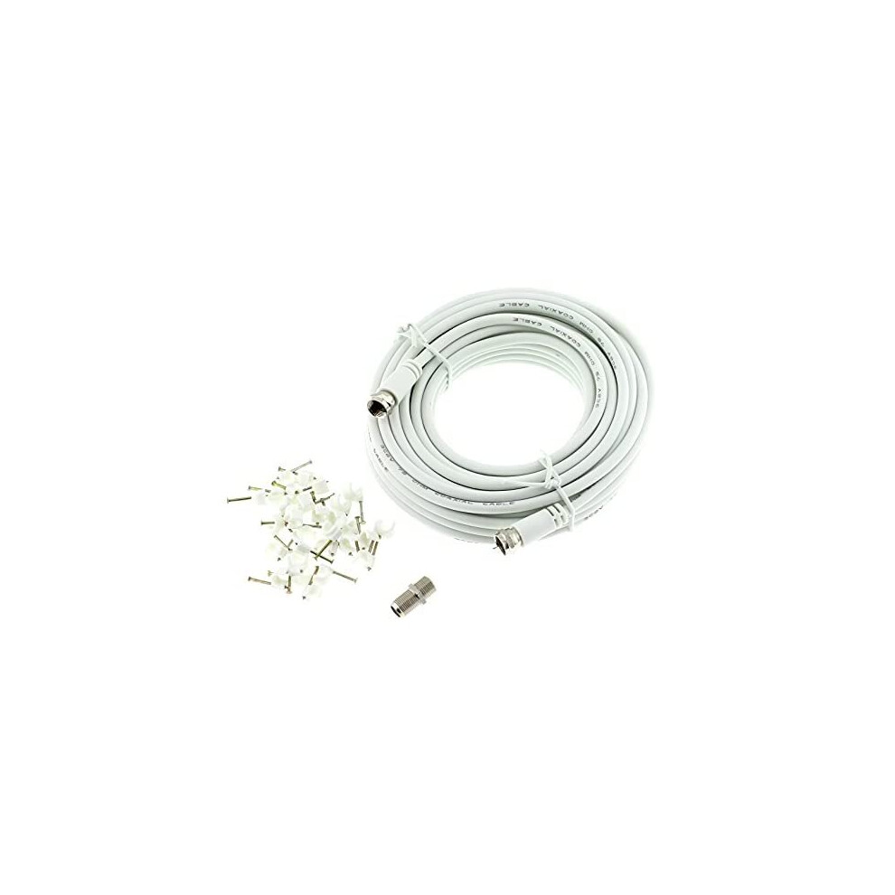 1m White RG6 Satellite Coax Cable Coaxial TV Lead & F's + Clips For Sky Plus HD
