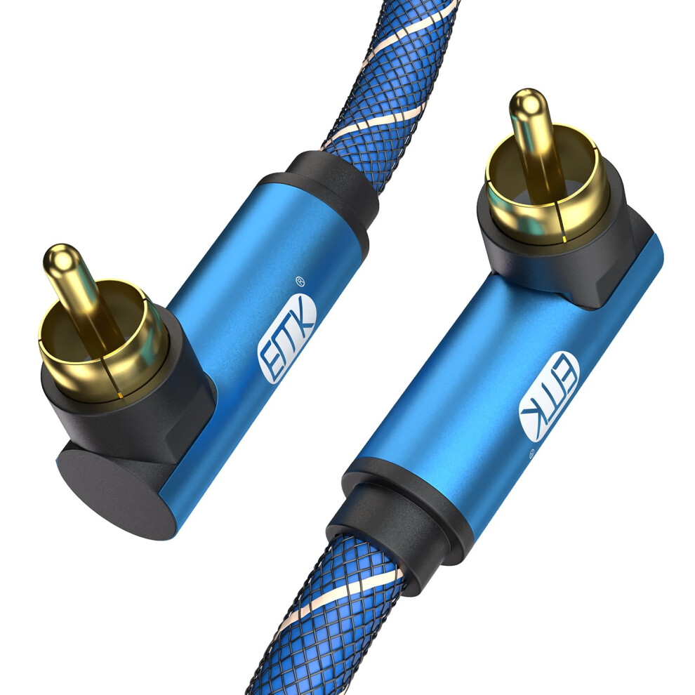 90 Degree Subwoofer Cable, RCA Cable Male to Male Digital Coaxial Audio Cable for Subwoofer, TV Blue
