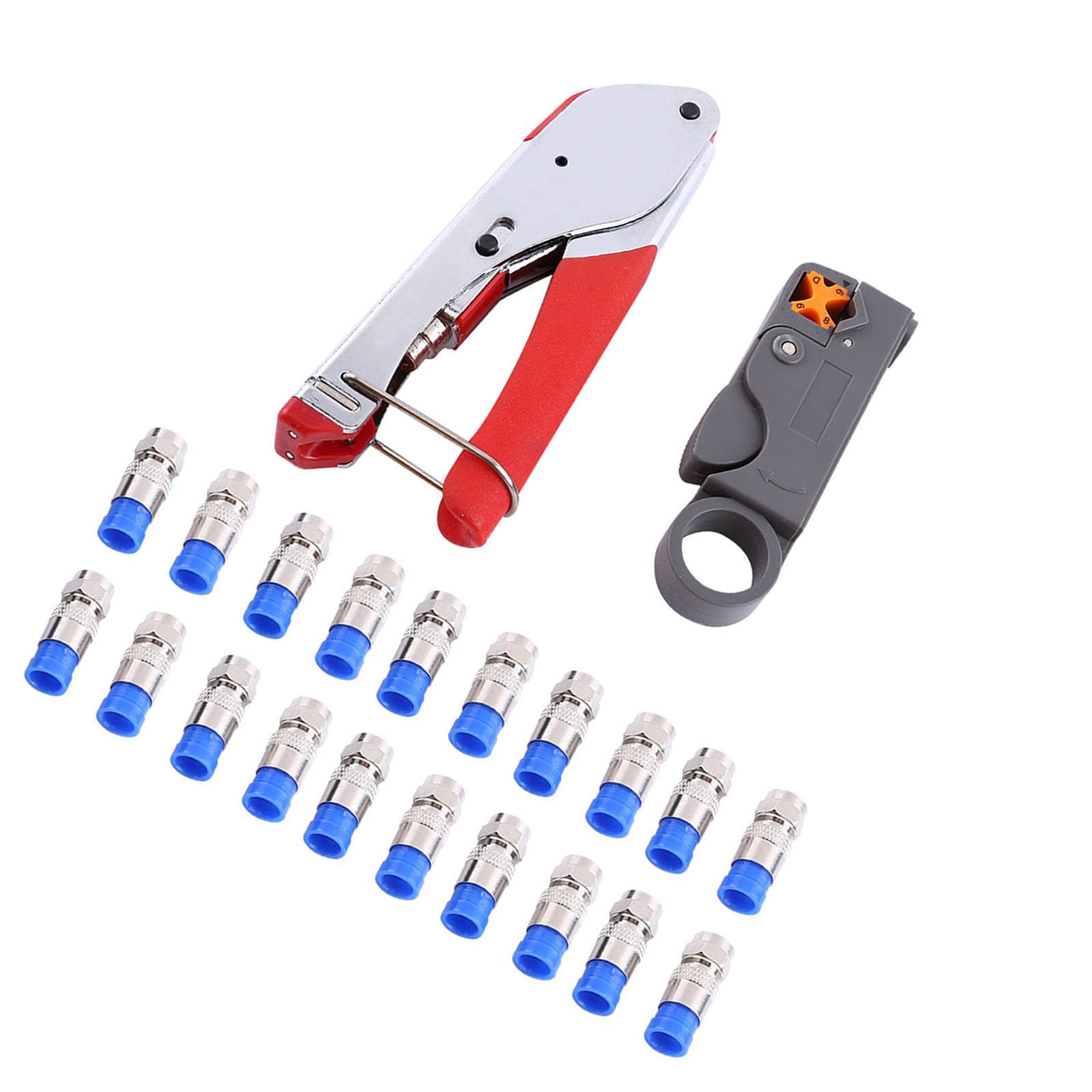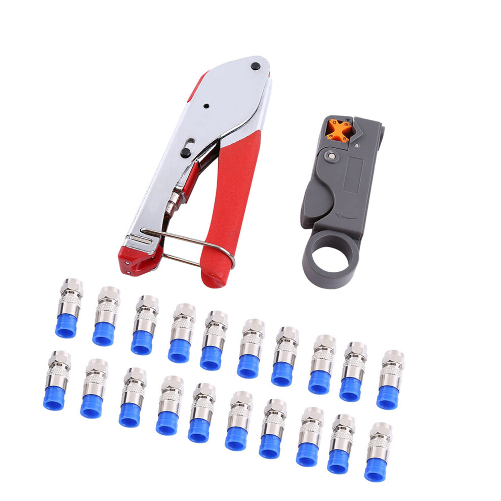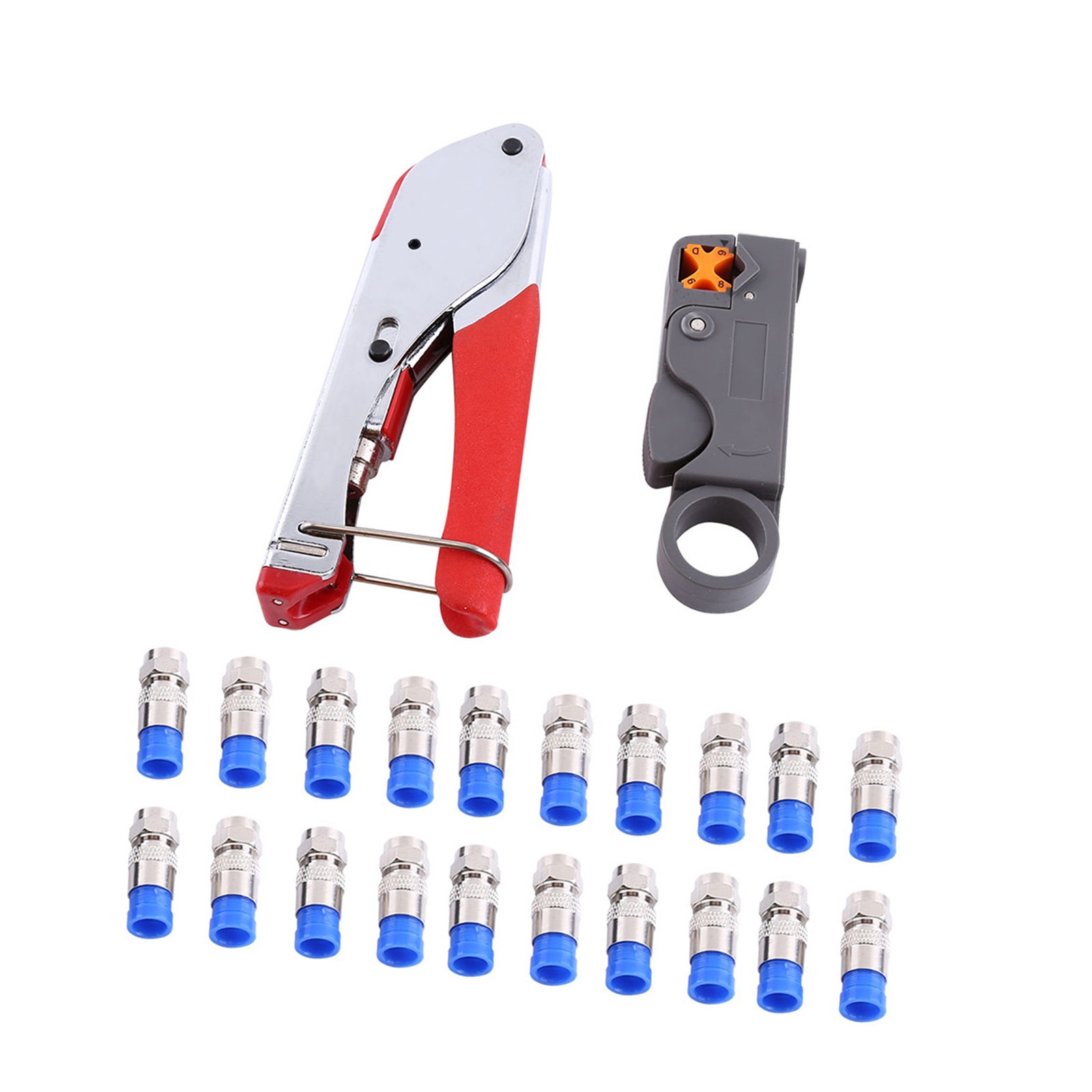 (As show, One size) Compression Pliers Set Crimping Tool RG59/RG6 Stripping Tool with 20 Pieces F Compression Plug for SAT Cable Coaxial Cable Wire St