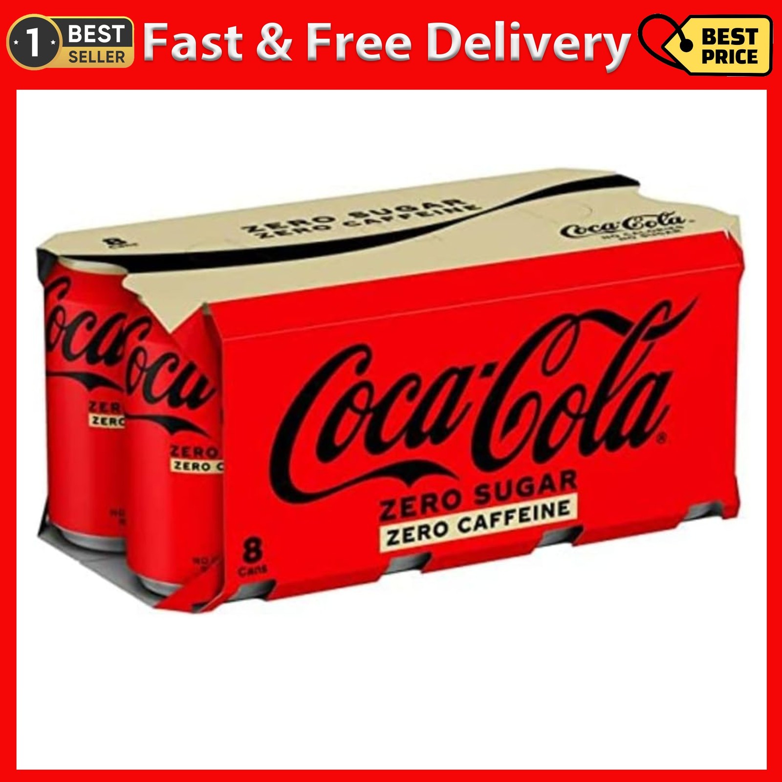 Coca-Cola Zero Sugar Caffeine 8 x 330 ml 330 (Pack of 8), Red