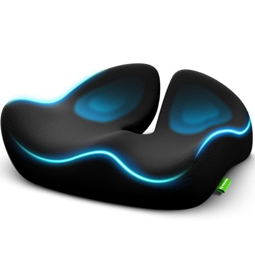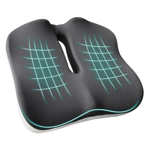 EvenVentric Memory Foam Seat Cushion-Coccyx Cushion for Tailbone Pain & Sciatica Relief, Breathable Chair Cushions with Anti-Slip Base for Office Chair, Car, Travel, Gaming, Long Sitting