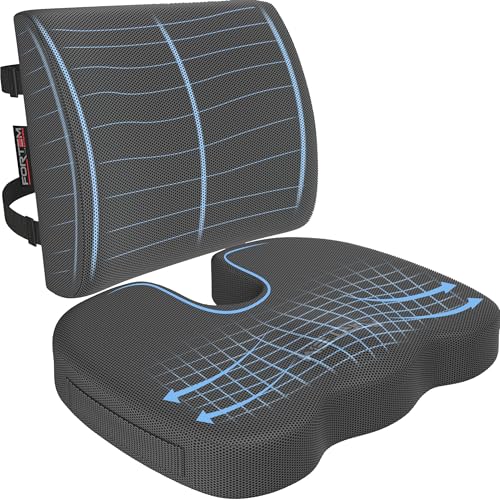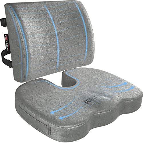 FORTEM Coccyx Cushion, Office Chair Cushion and Back Support for Office Chair, Lumbar Support Pillow, Memory Foam, Non Slip Sitting and Back Rest for Gaming, Chair Pad, XL