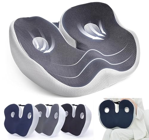 Coccyx Cushion for Tailbone Pain - Adjustable Memory Foam Sit Bone Relief Seat Cushion, Outfany Ergoseat, Hilipert Ergoseat, Ergonomic Seat Cushion for Long Sitting, Office, Car Drivers (Grey)